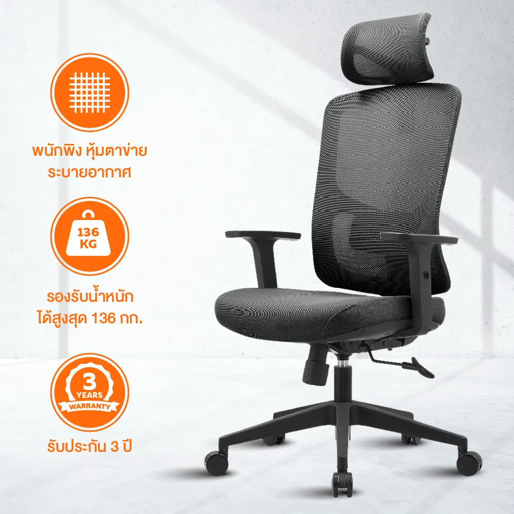 จุดเด่นคือเบาะนั่งที่ใหญ่และนุ่มสบาย, พนักพิงตาข่ายระบายอากาศดี, และรับประกัน 3 ปี แต่ไม่เหมาะกับคนตัวเล็ก (สูงต่ำกว่า 170 ซม.) และมีข้อจำกัดสำคัญคือ ล็อกเอนได้เฉพาะท่านั่งตรง เท่านั้น (ไม่สามารถล็อกเอนค้างได้) และ ประกอบเองค่อนข้างยาก หากอยู่นอกพื้นที่บริการ
