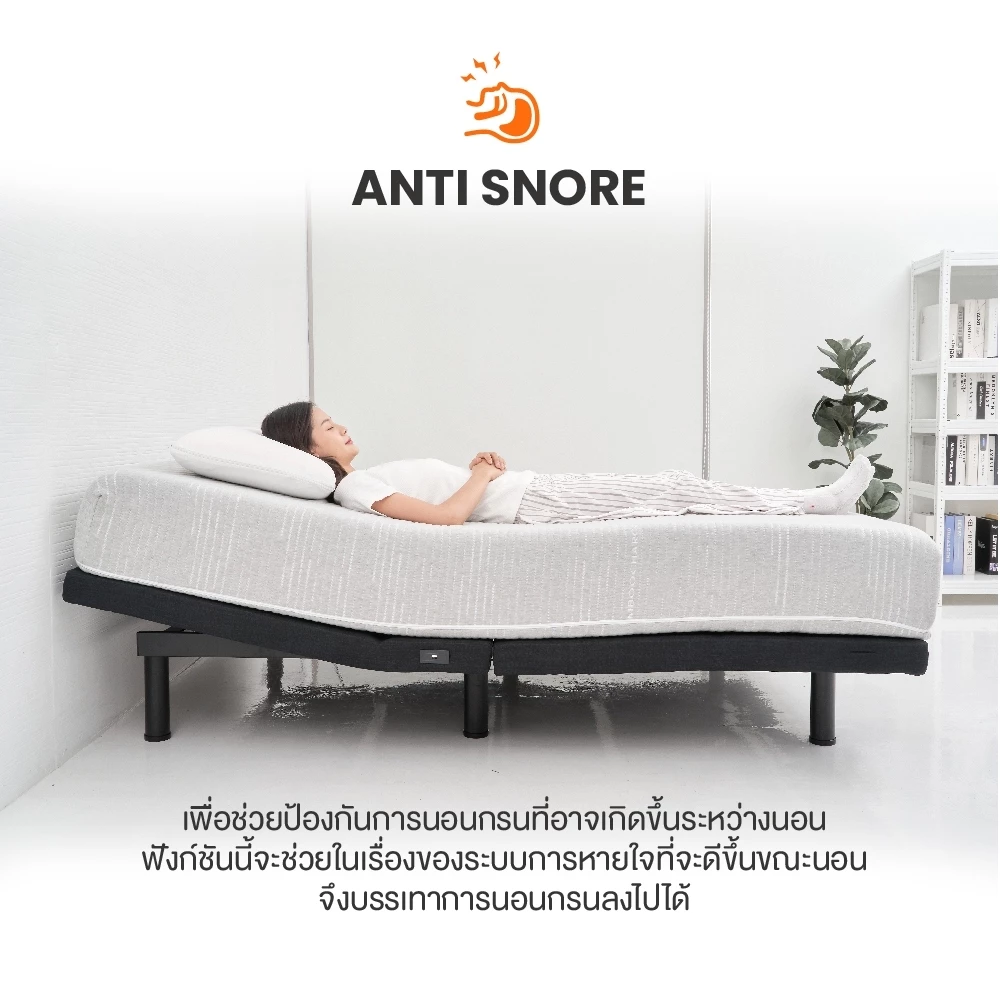 - Anti Snore ช่วยลดการนอนกรนได้จริง — ปรับระดับหัวเตียงอัตโนมัติ ช่วยเปิดทางเดินหายใจ คู่นอนขอบคุณแน่นอน